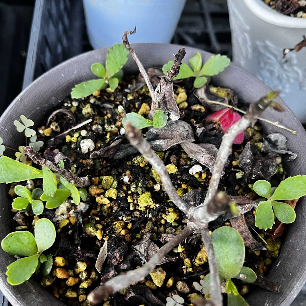 私は発泡スチロールの箱を使っています。庭が狭いので、昼間は太陽に当てられる様に、物置の上にアエオニウムの入った発泡スチロールの箱を置き、夜は蓋をして重ねます。不死鳥は何処にでも生え強いと思っていました。春になったら、こぼれた子株が出てくるかも知りませんよ。