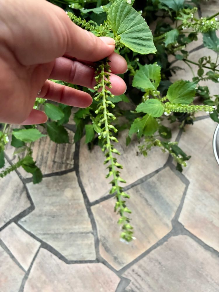 大葉の花は刺身の付け合わせとか天婦羅にすると美味しいです。大葉の葉より香りが強いかも😋