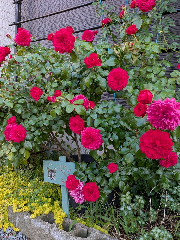 レッドレオナルドダヴィンチはフロリバンダとかクライミングとか、シュラブとか分類が分かれてるけど、うちではフロリバンダかな🙄シュート更新はせずに枝が太るタイプのようです。