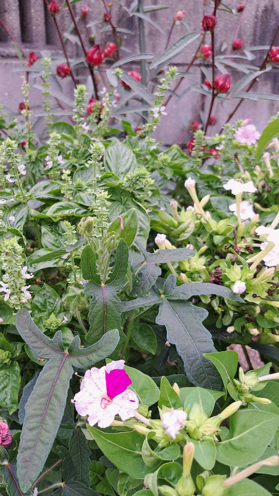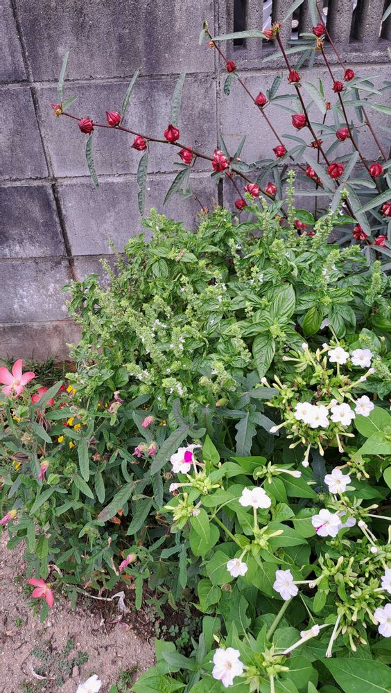 色々な花のそばで、負けじと増え続けるバジルです🤭