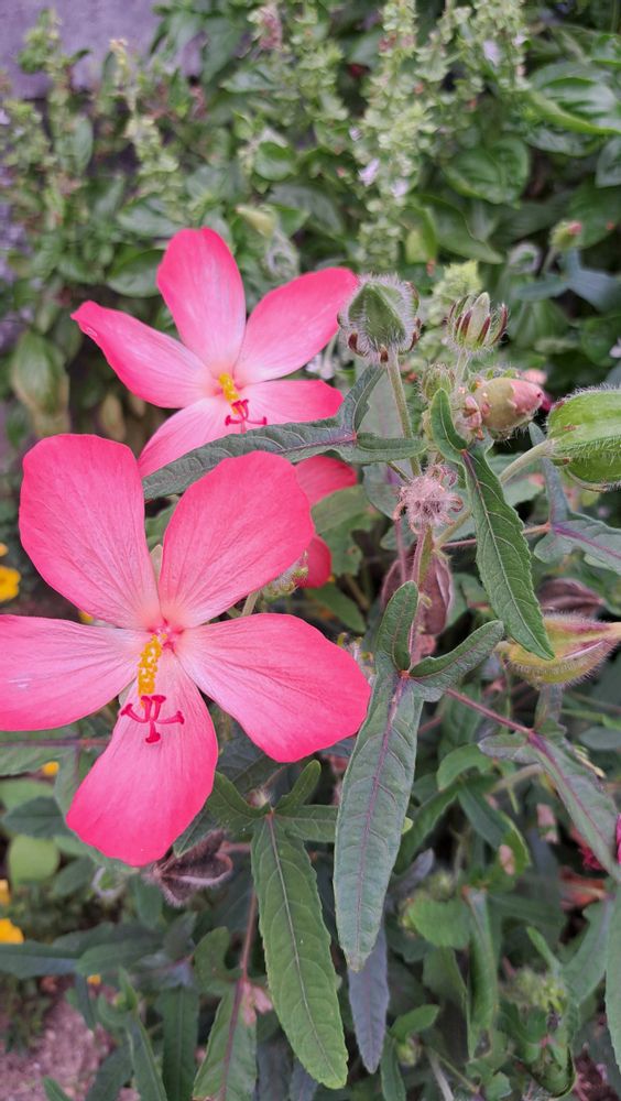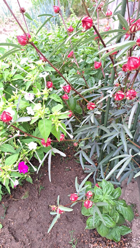 オシロイ花&バジル&ローゼル、片隅にアベルモスクス