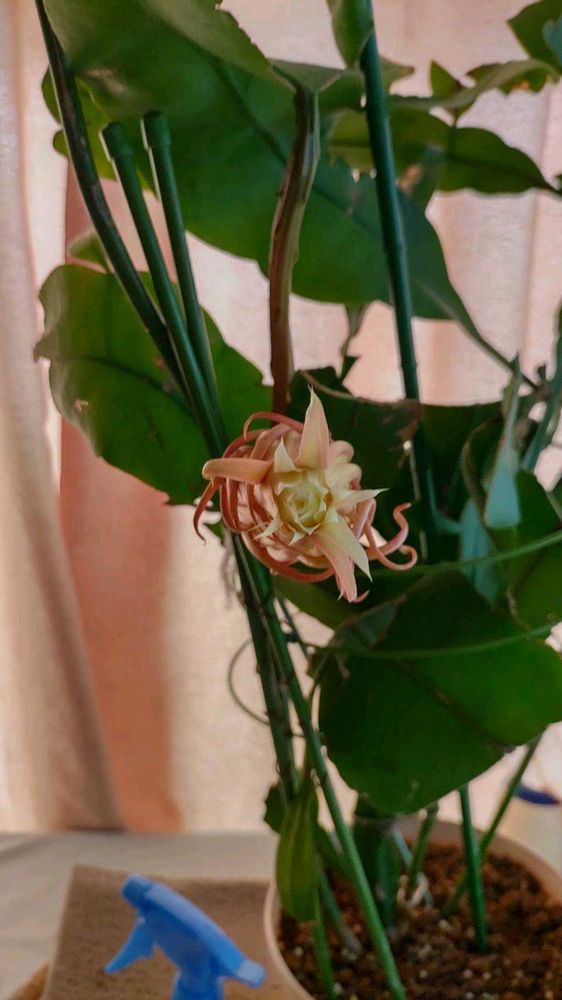 3年前?に挿し芽したのを頂き、途中ジャングル状態になったので、かなり葉を切り落としましたが、切らない方がもっと咲いたのかなあ🤔
