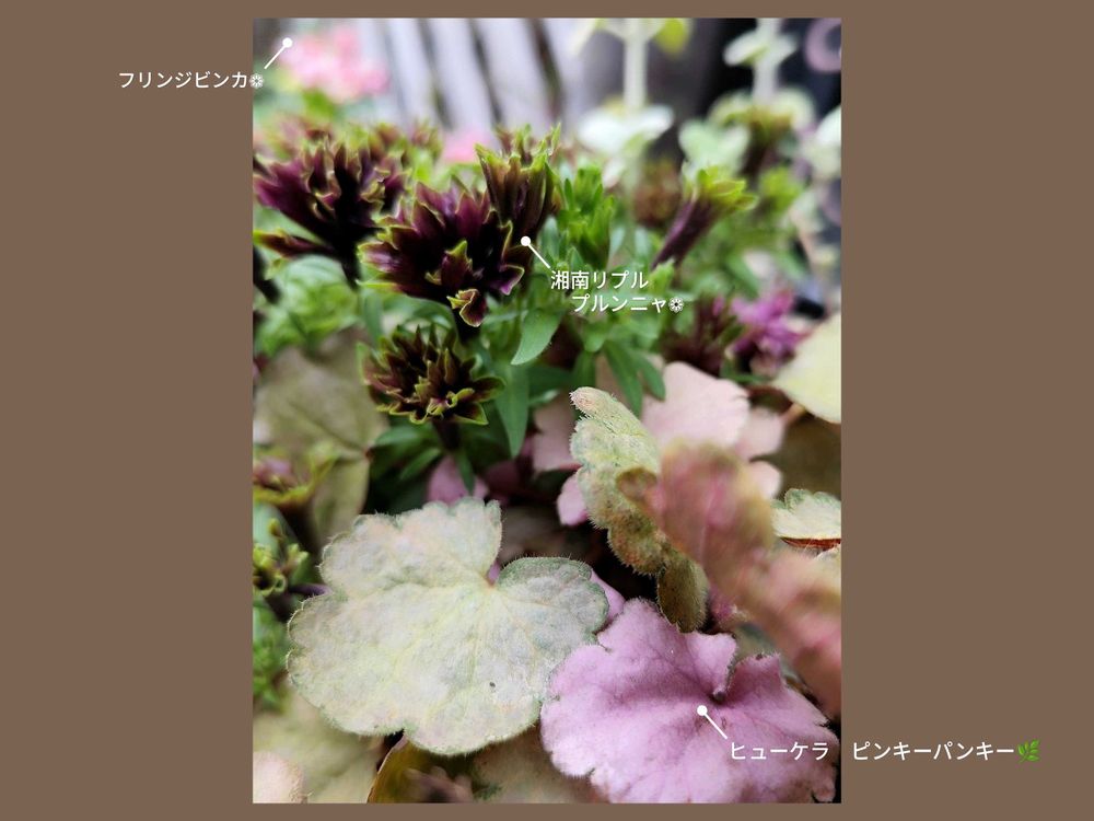 フリンジビンカ,ペチュニア 湘南リプル プルンニャ,ヒューケラ ピンキーパンキーの投稿画像