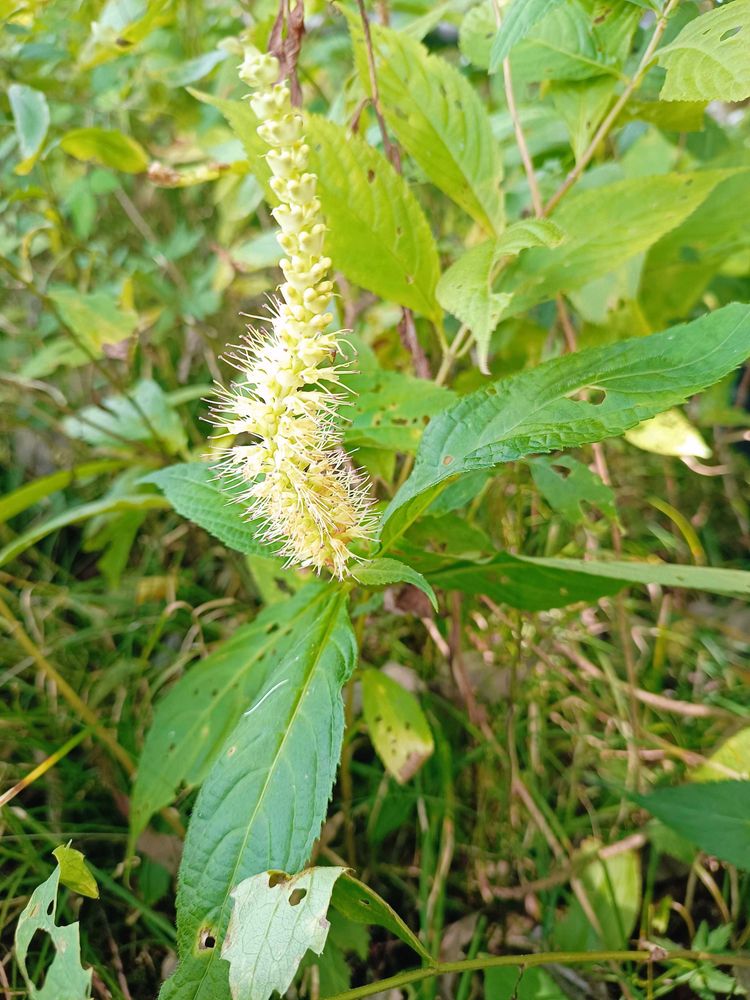 葉は柄があり、長楕円形〜広披針形で長さ10〜25cm。鋸歯がありほとんど無毛。
