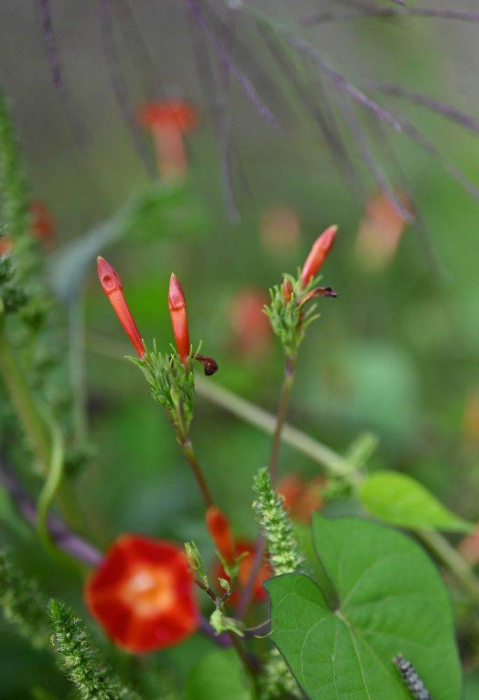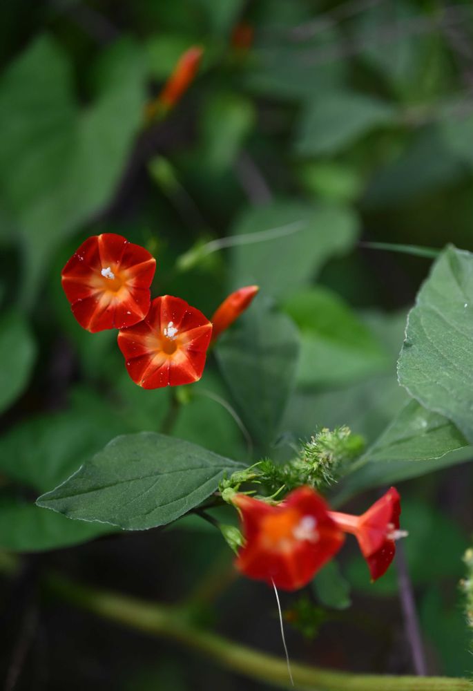 花を上から見ると径1.5 - 1.8 cm の五角形で、花色は赤色で、虫媒花である。