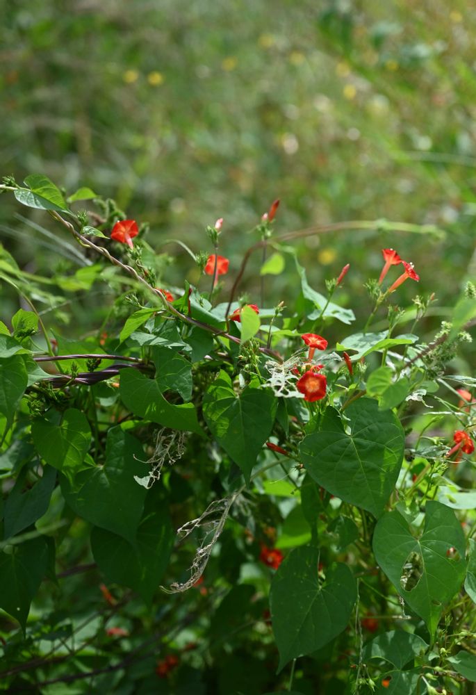 つる性植物で、茎が左巻きの蔓になって、さまざまなものにからまりながら長さ3mほどまで伸びる。