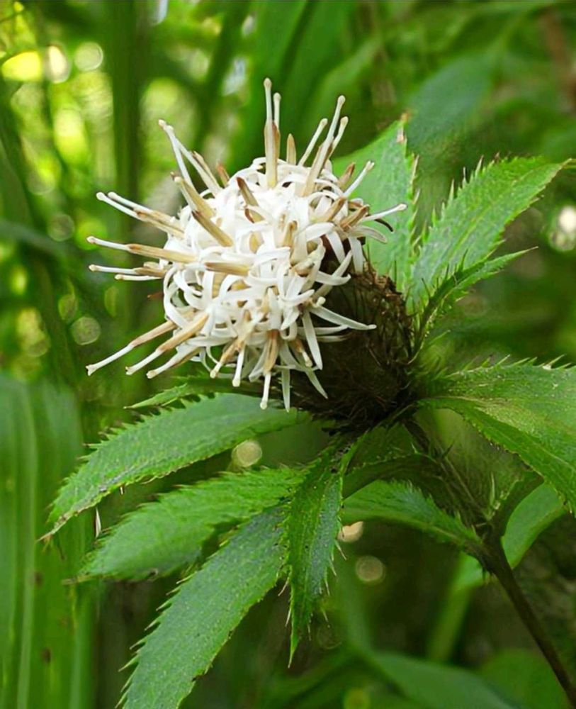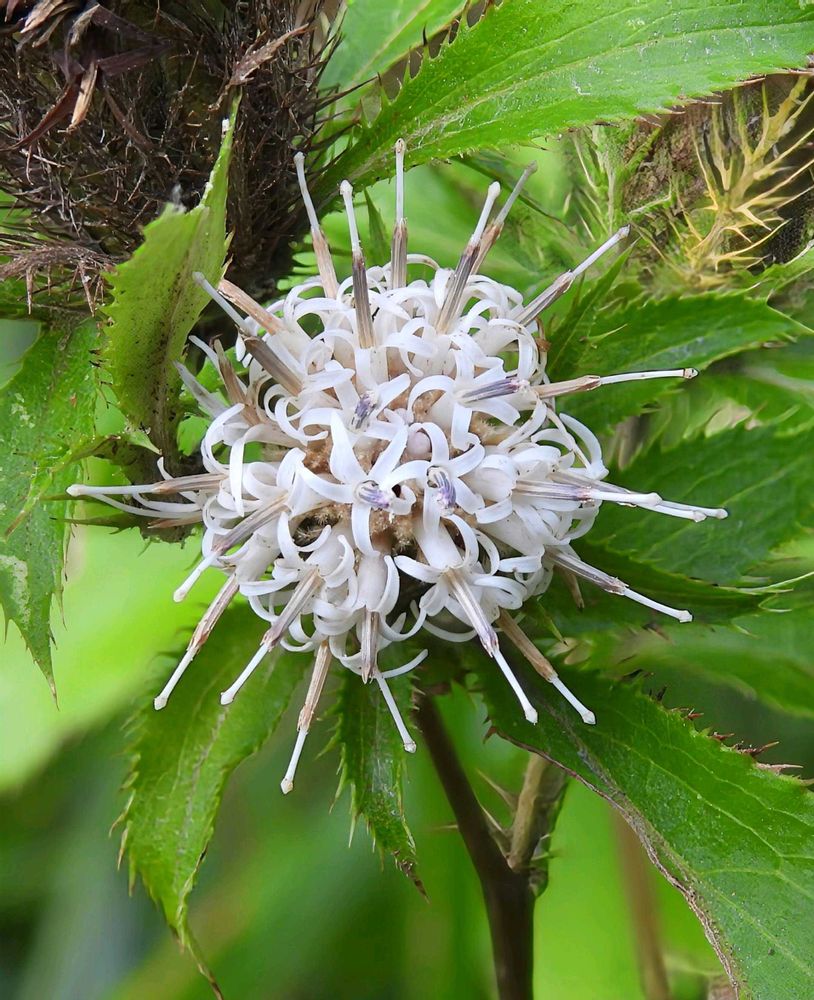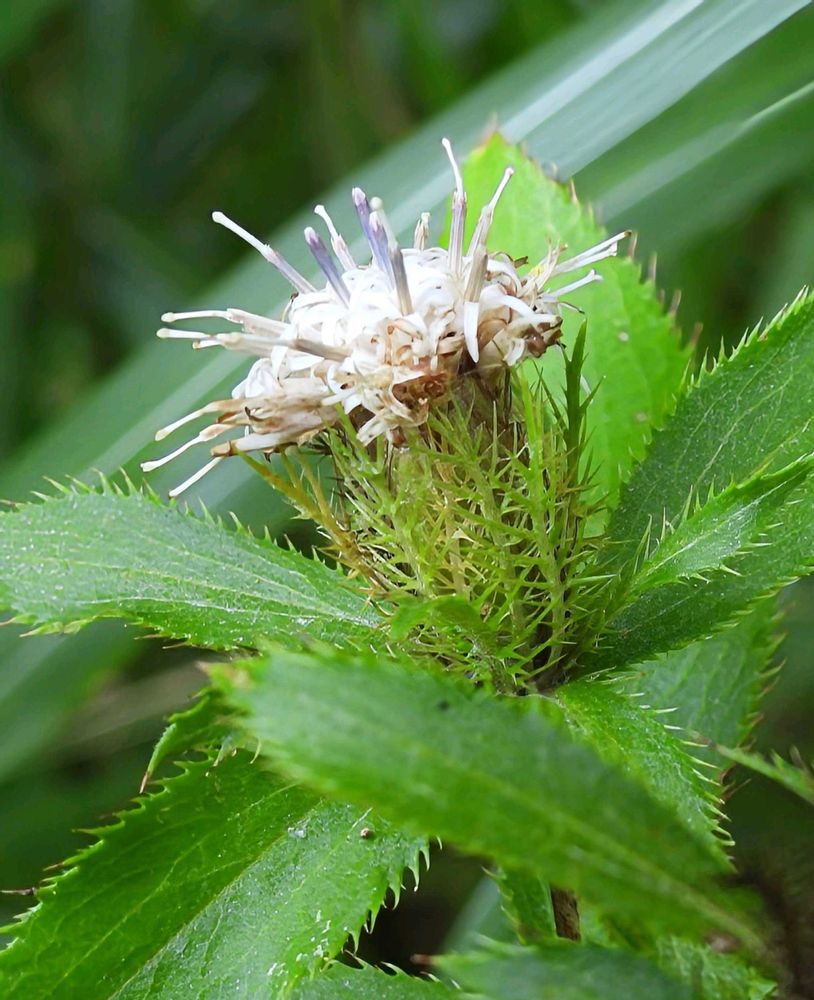 花は筒状の小花が密生して、2cm位の頭花をつけます。