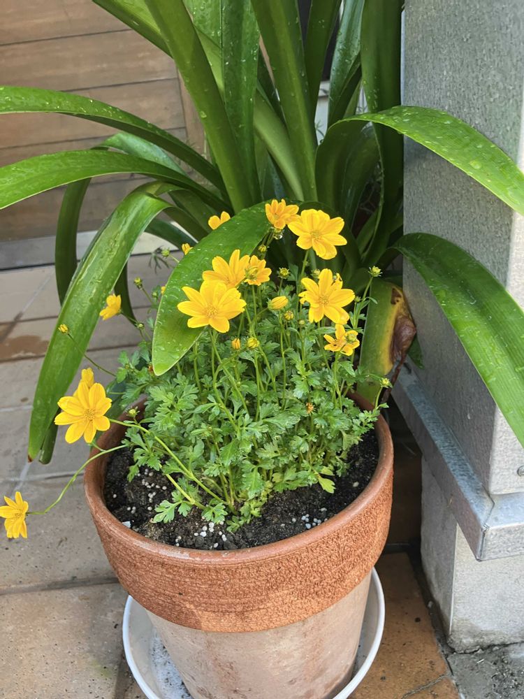 園芸店で、新しく撫子と黄色い花を買いました。玄関前にミントとペチュニアなどを並べてちょっと賑やかにしてみました。