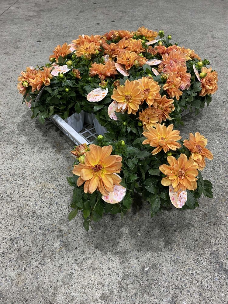 ダリアのキャラメル。秋のシーズンもおすすめのダリア。アンティークな色合いが秋のシーズンにピッタリです。