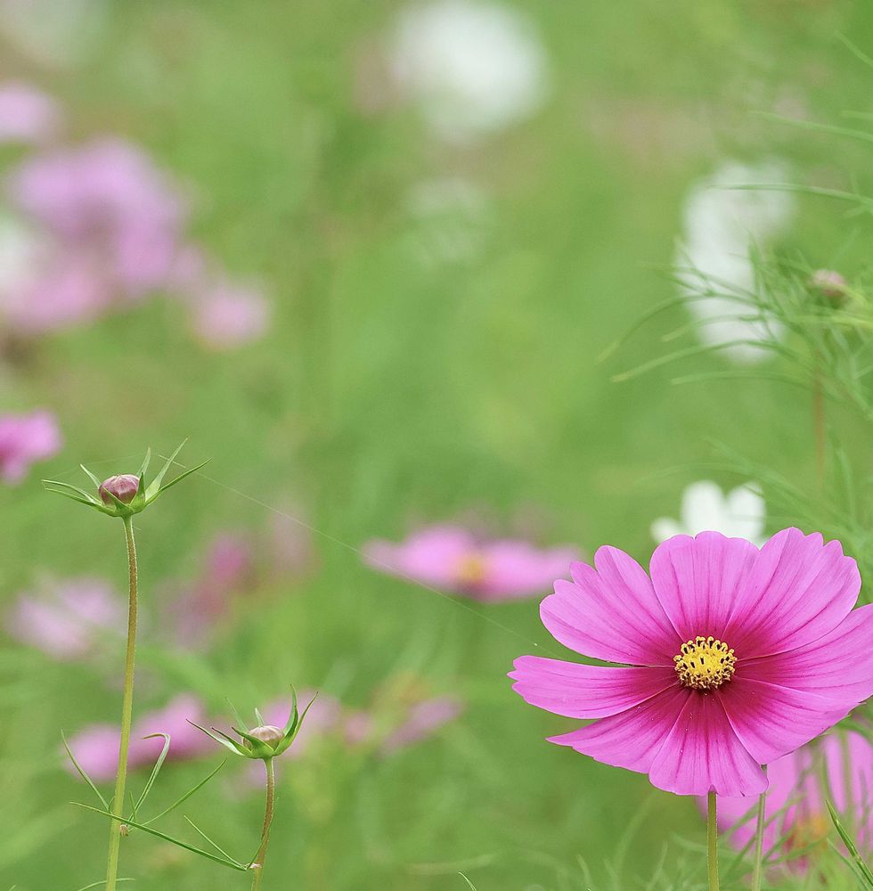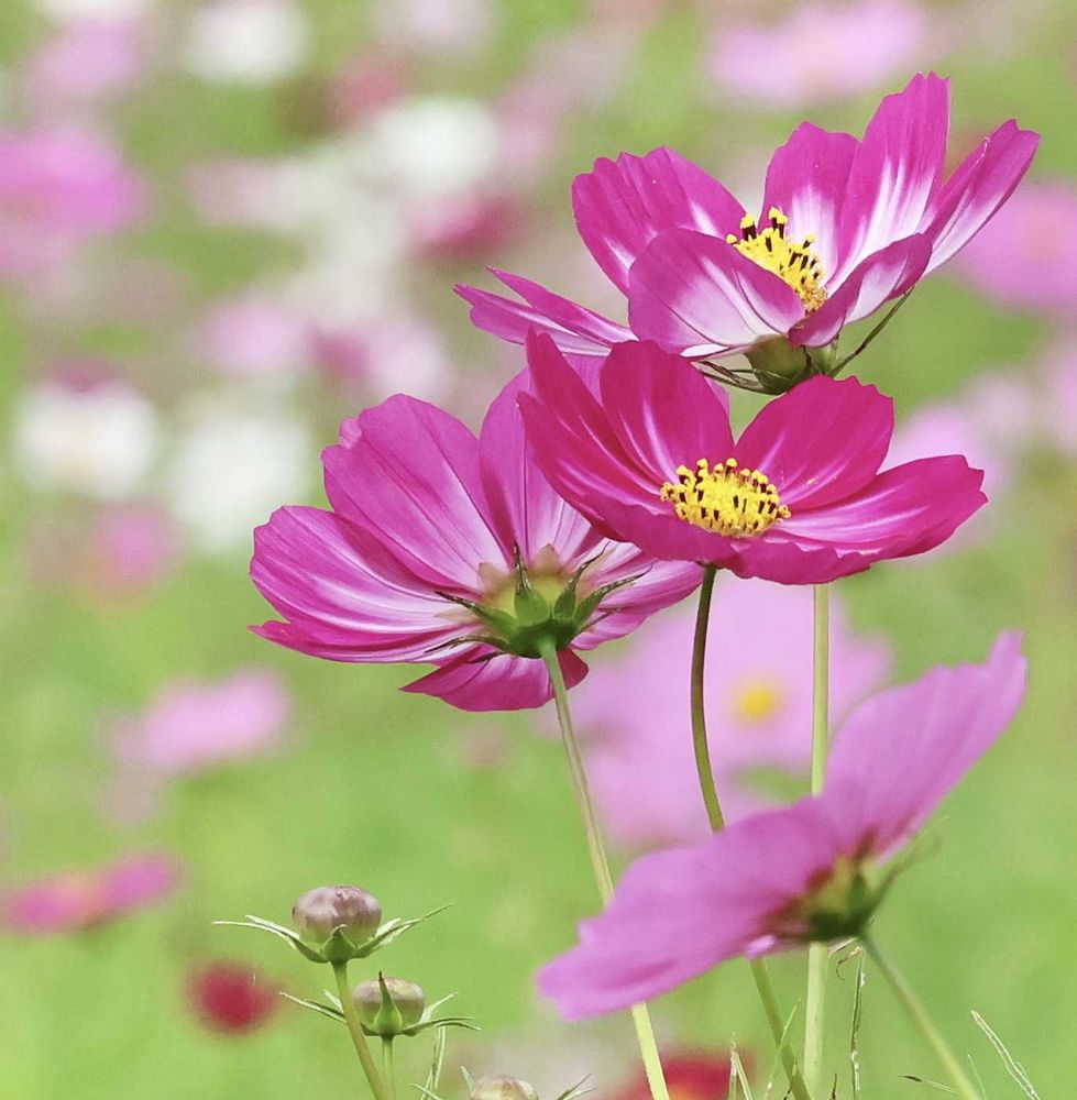 コスモス綺麗に咲いてますね🩷🤍🟢