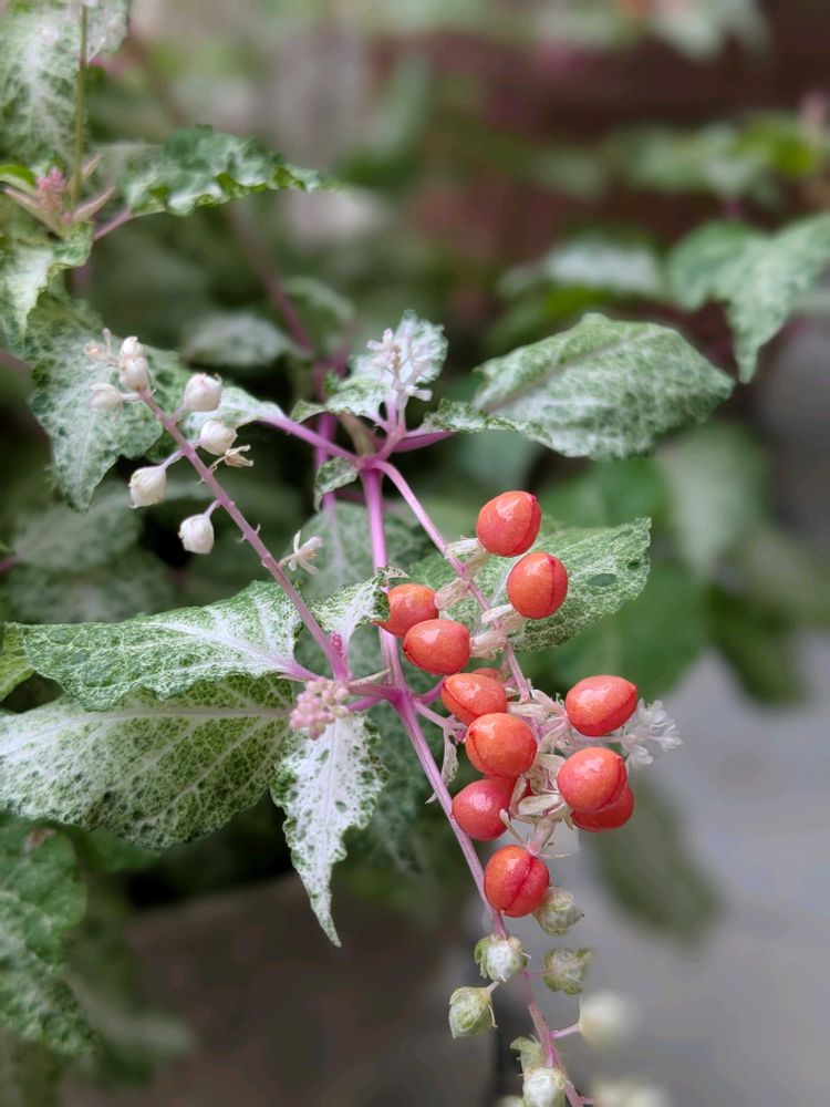 ジュズサンゴの実が赤くなりました❤️斑入りなので可愛いです💕