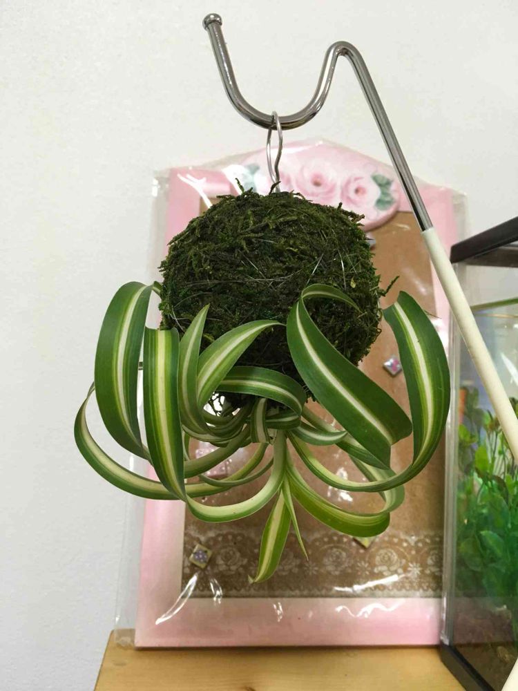 前回に続き、オリズルランボニーの苔玉をバナナスタンドに吊り下げてみました‼️