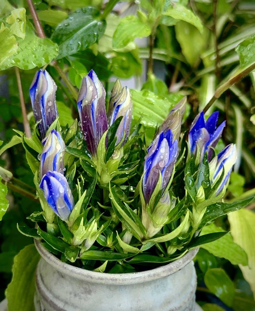 ベランダで🪴鉢植えで植栽養生中のリンドウの花が開花し始めています。