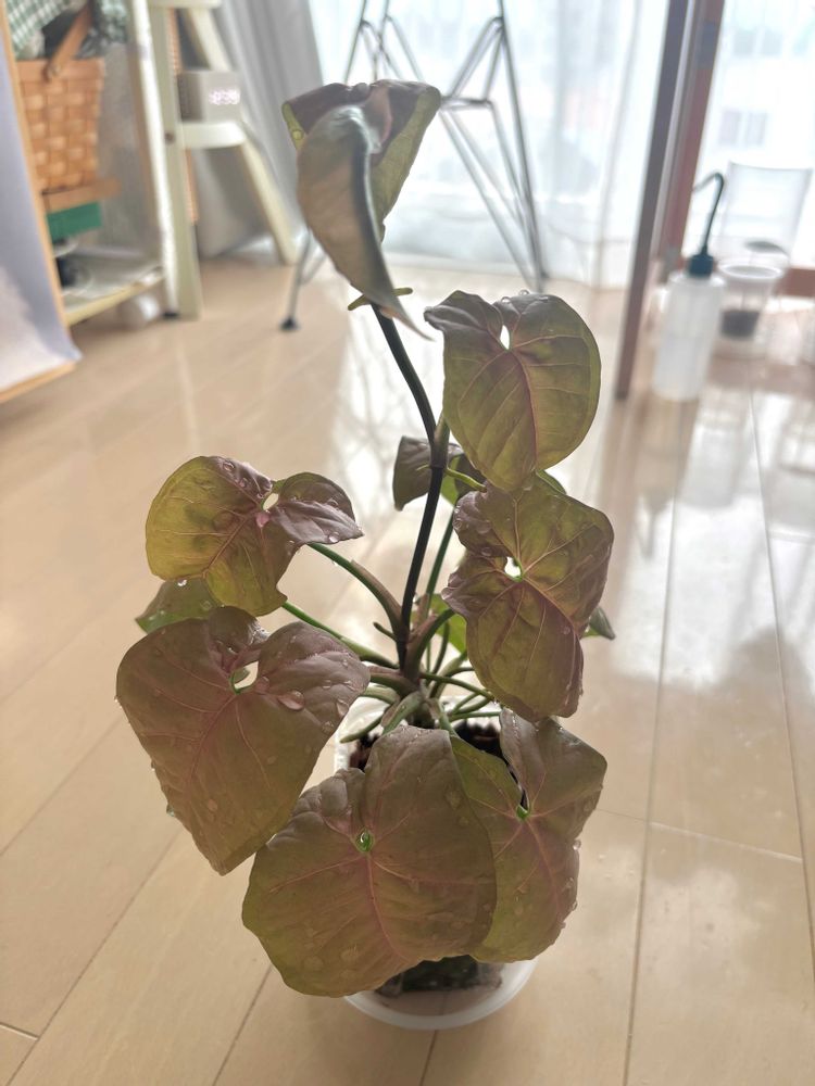 急に縦に伸びてしまったシンゴニウムネオンさん、剪定しました🙌