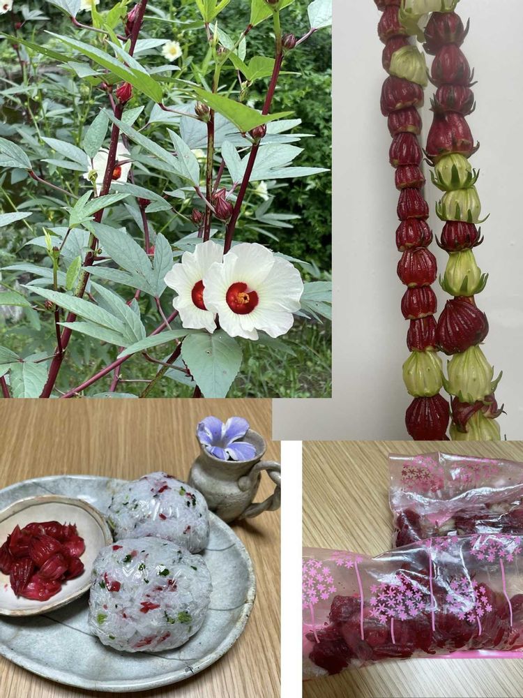 ローゼルを🔍塩漬けし、刻んで🍙にしました♪