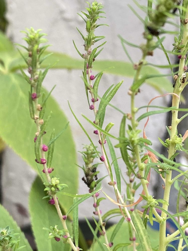 コキア痩せっぽっちでほうき草🧹にはほど遠いけどお花が見れ実もなったから満足✨