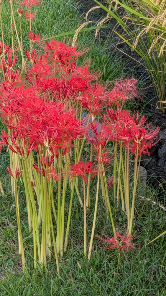③④近くの田んぼのヒガンバナが咲き出してます。