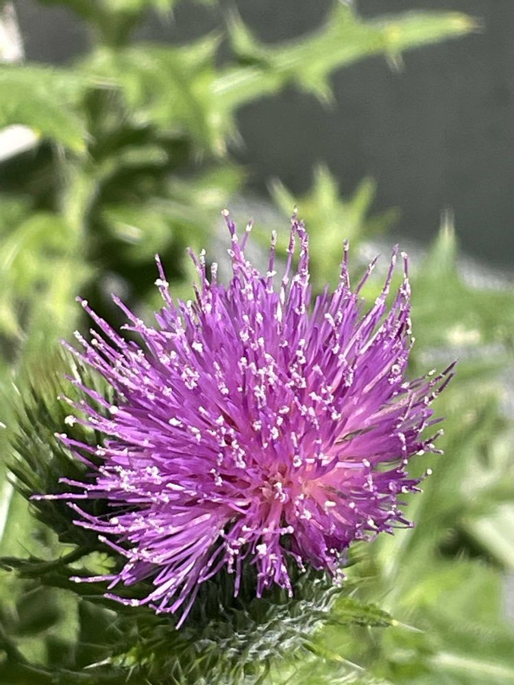 アメリカオニアザミです。歯医者さんの塀にピッタリ咲いていました。