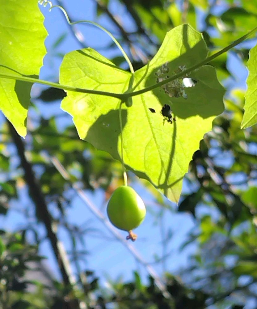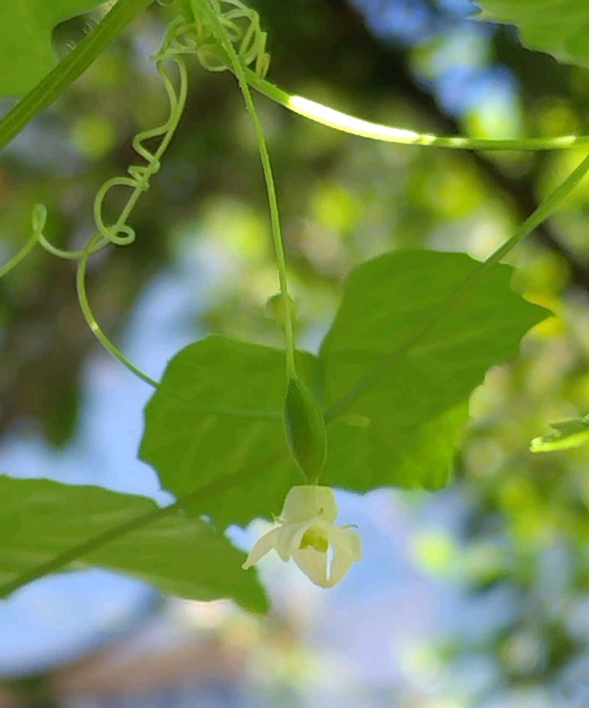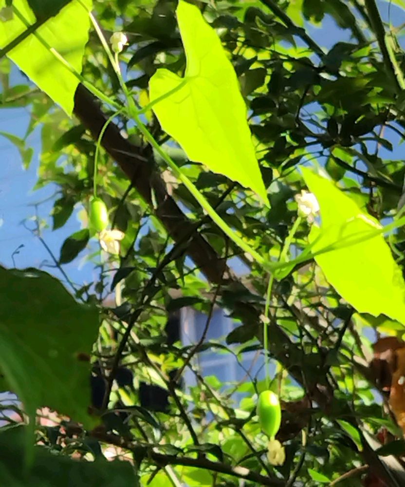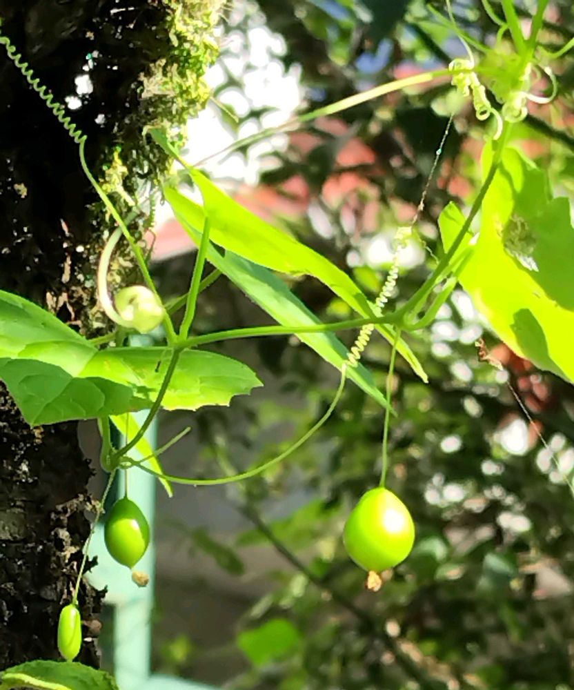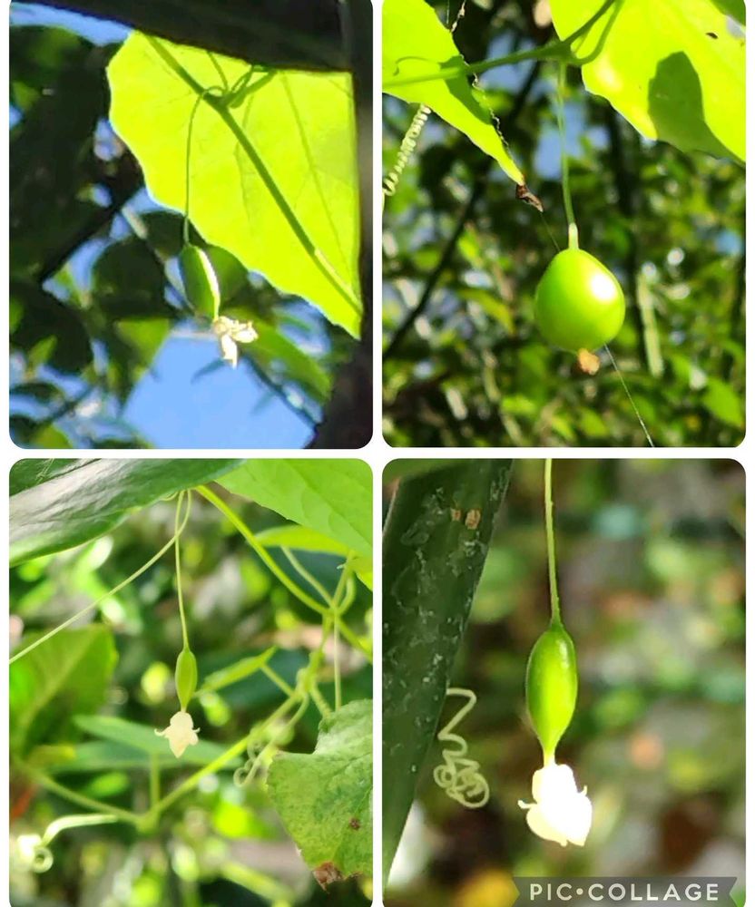 スズメウリの黄緑色の実🟢と白いお花❇️🤍❇️