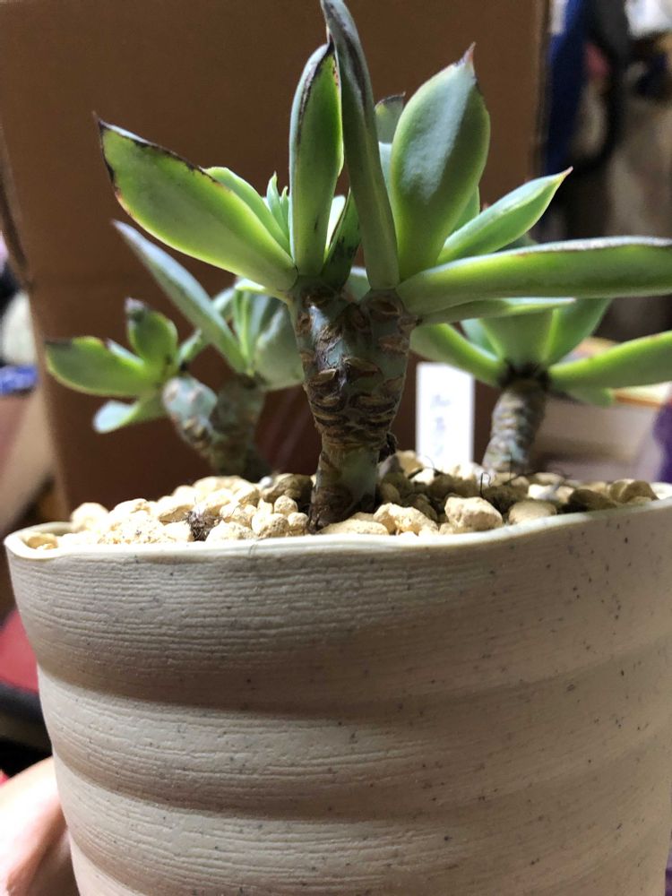 多肉棚の中で水を切られまくったせいで葉がギリギリまで落ちたルエラ。塊根植物みたいになりました。