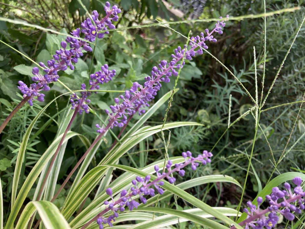 ヤブランのこの紫の花と斑入りの涼し気な葉っぱの組み合わせがとってもいいですよね!💜💚