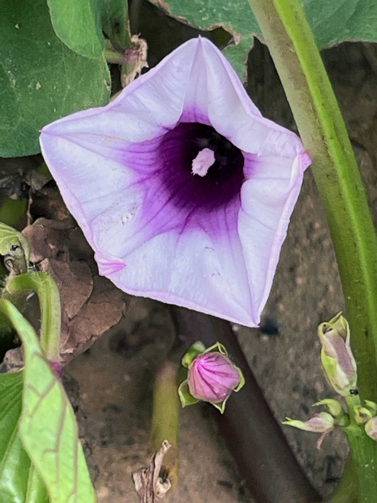葉っぱに隠れて咲いているのはこの1輪だけでした🍠