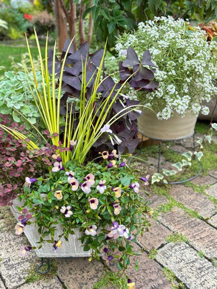 昨年の挿し芽を育てたスーパートレニアカタリーナ ラムレーズンを使った寄せ植えです🥰
