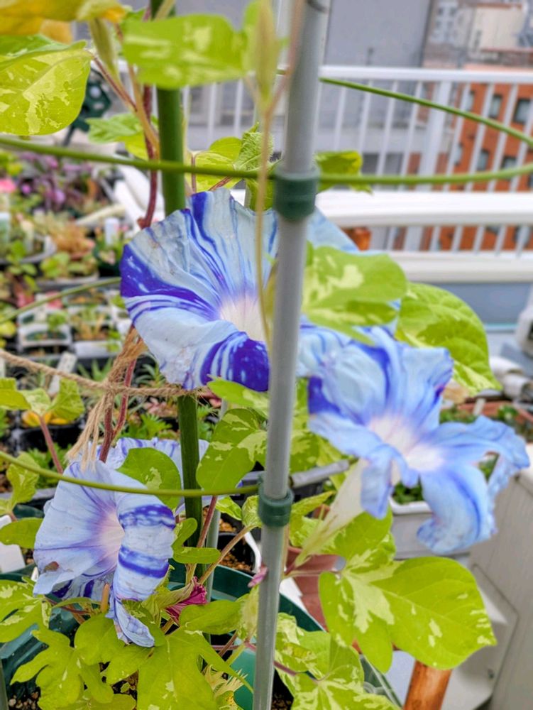 朝顔さんが頑張って咲いているかと思えば、秋を代表すりリンドウ💜に広い空☁⛅️…爽やかだわ💕