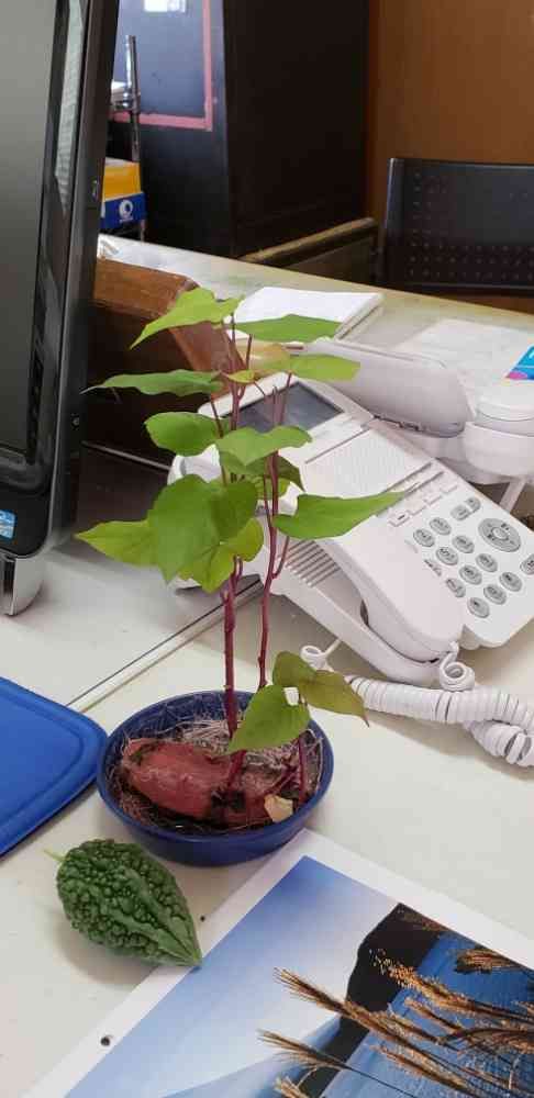 デスク,ゴーヤ,さつまいもの葉っぱの投稿画像