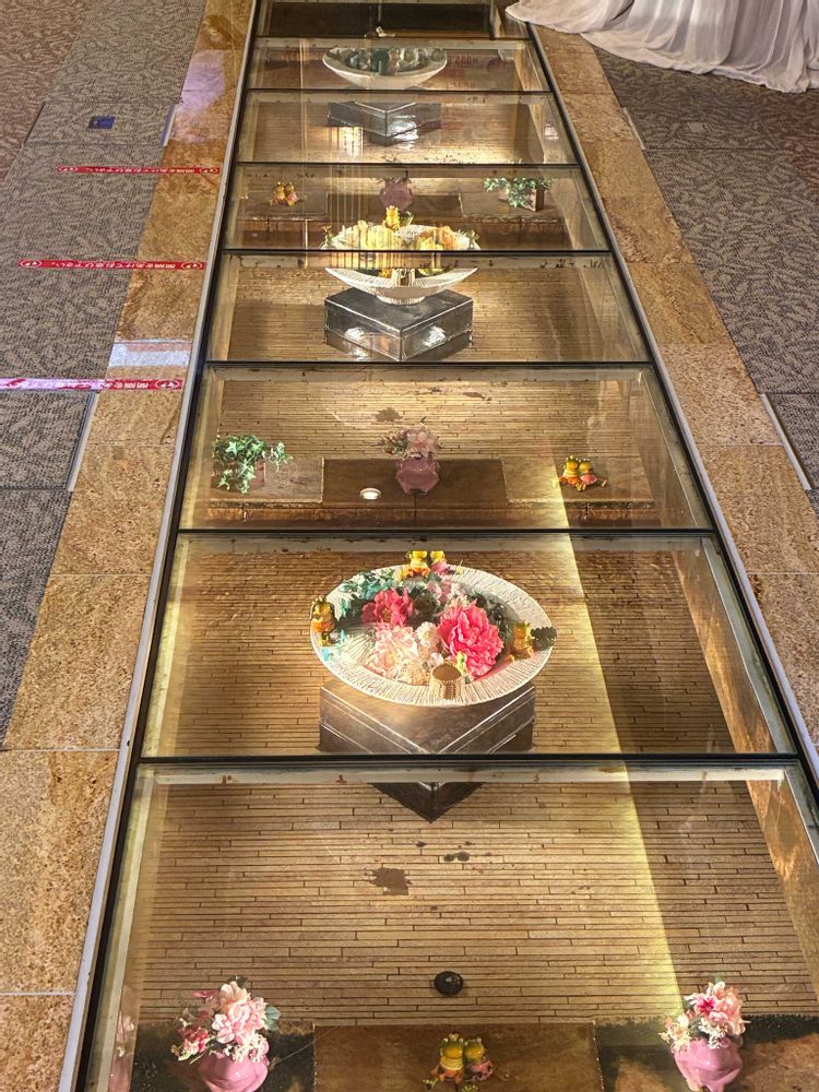 受付ロビーの床の下に「お花の寄せ植え」がありました。📸🌺🏵️🌿😄🌇👌