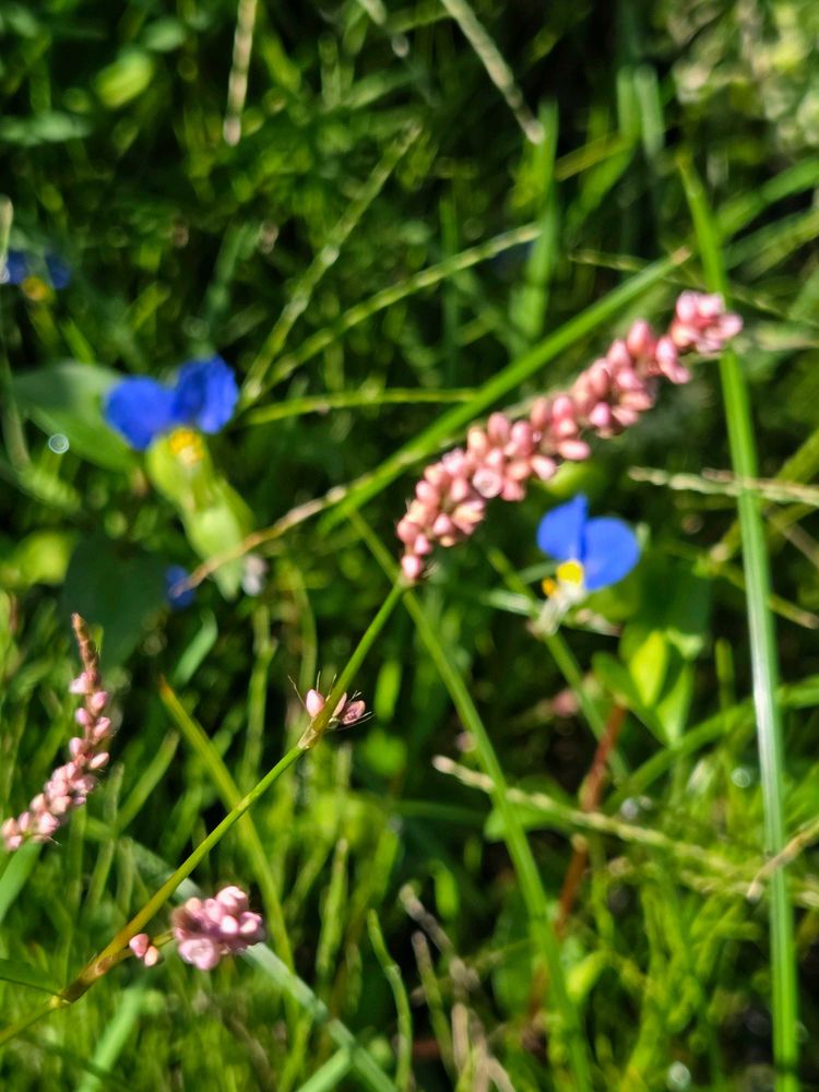 畑の草、ツユクサの中にイヌタデ咲いていました。