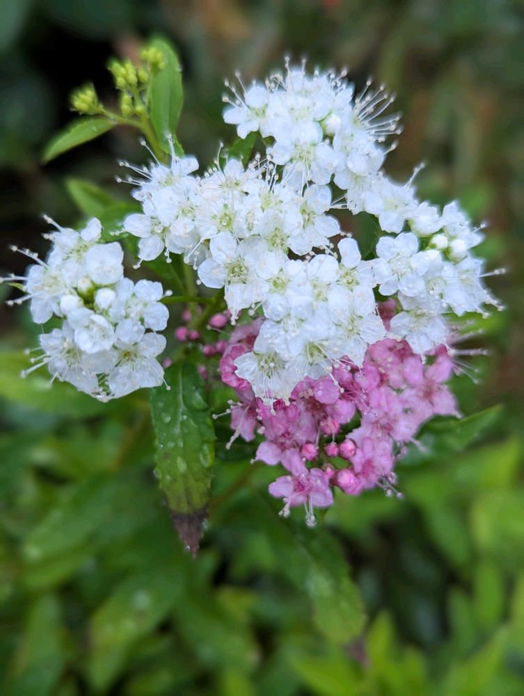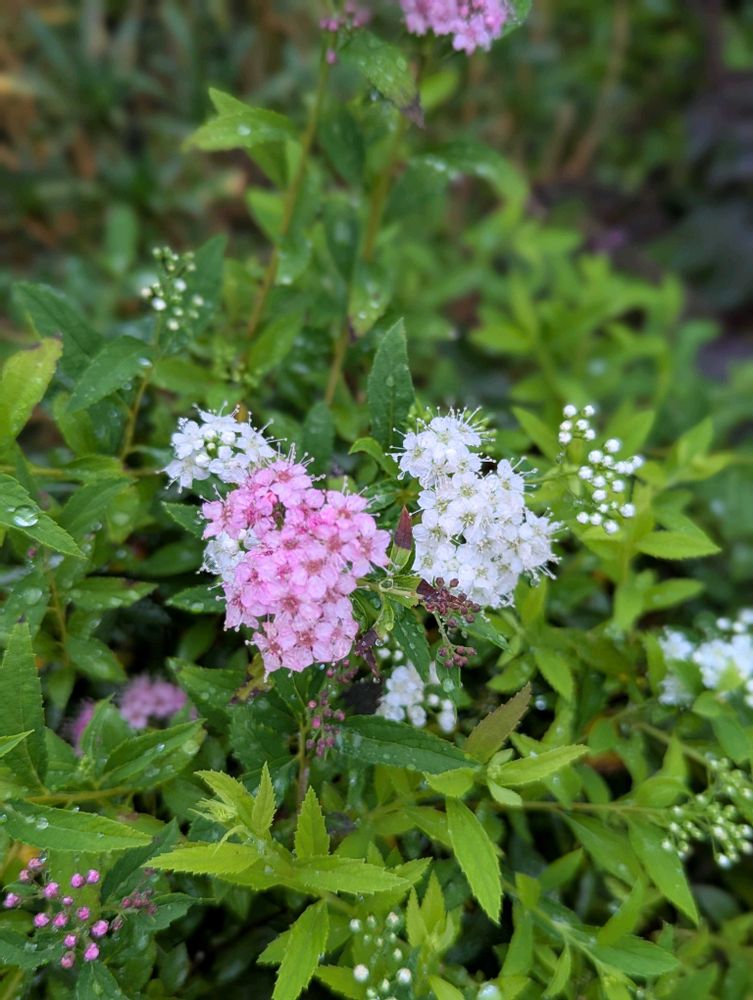 花ともさんから数年前にいただいた〝源平シモツケ〟が、また咲いてきました✨