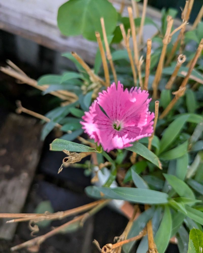 春先に買って、あんまり咲かなかった、なでしこらんまんが、一つだけ咲いていました。