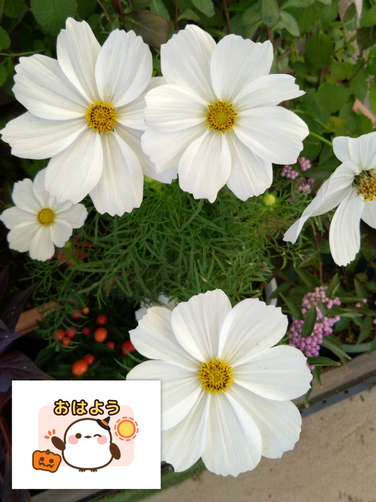 そのお母様が真っ白なコスモス畑を手入れされていたのね😄