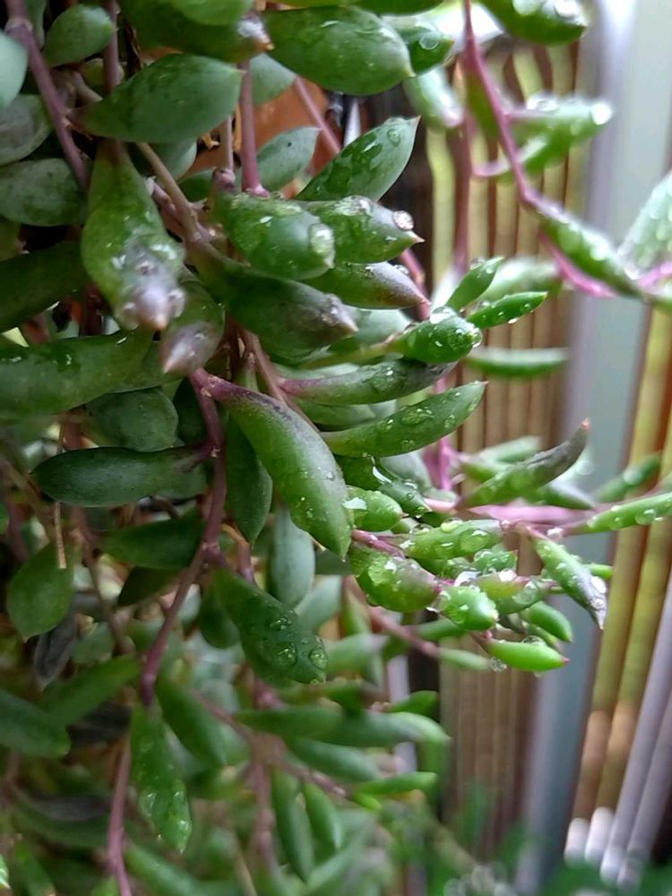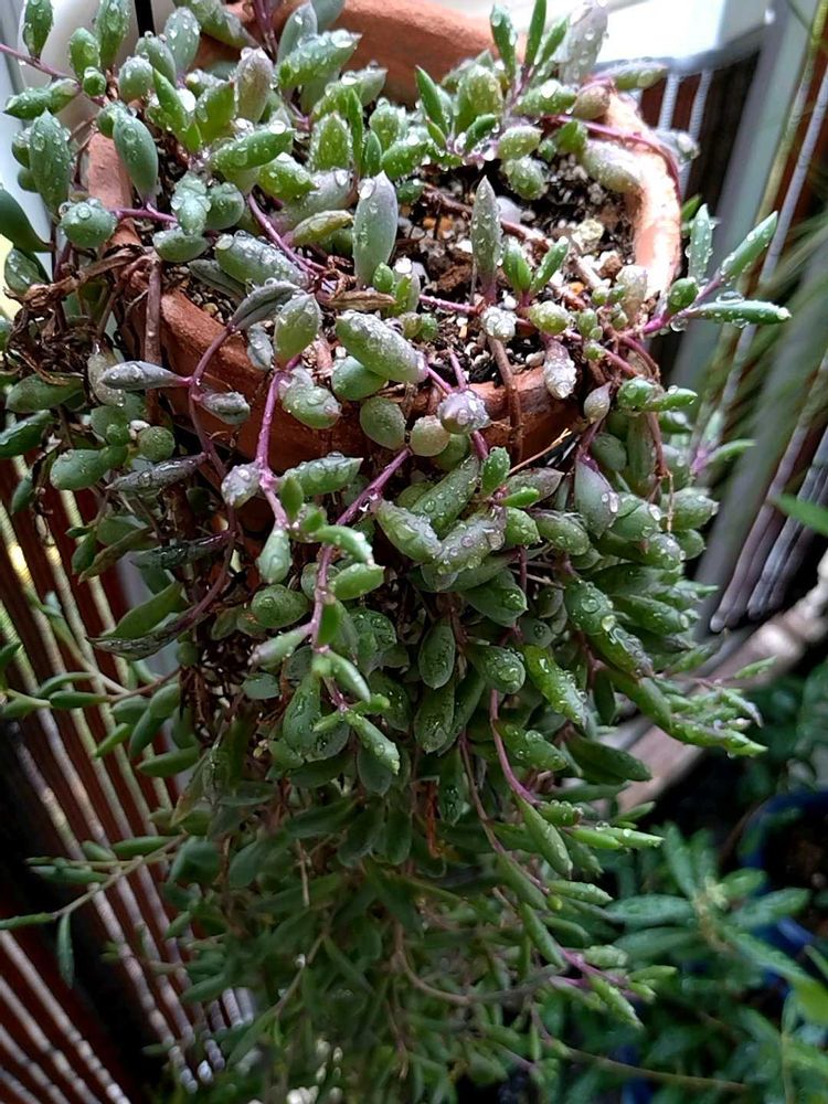 起きたら雨が降っていてびっくり😳恵みの雨かな☔️ルビネさん雨を浴びてプクプクになりました😄💚✨