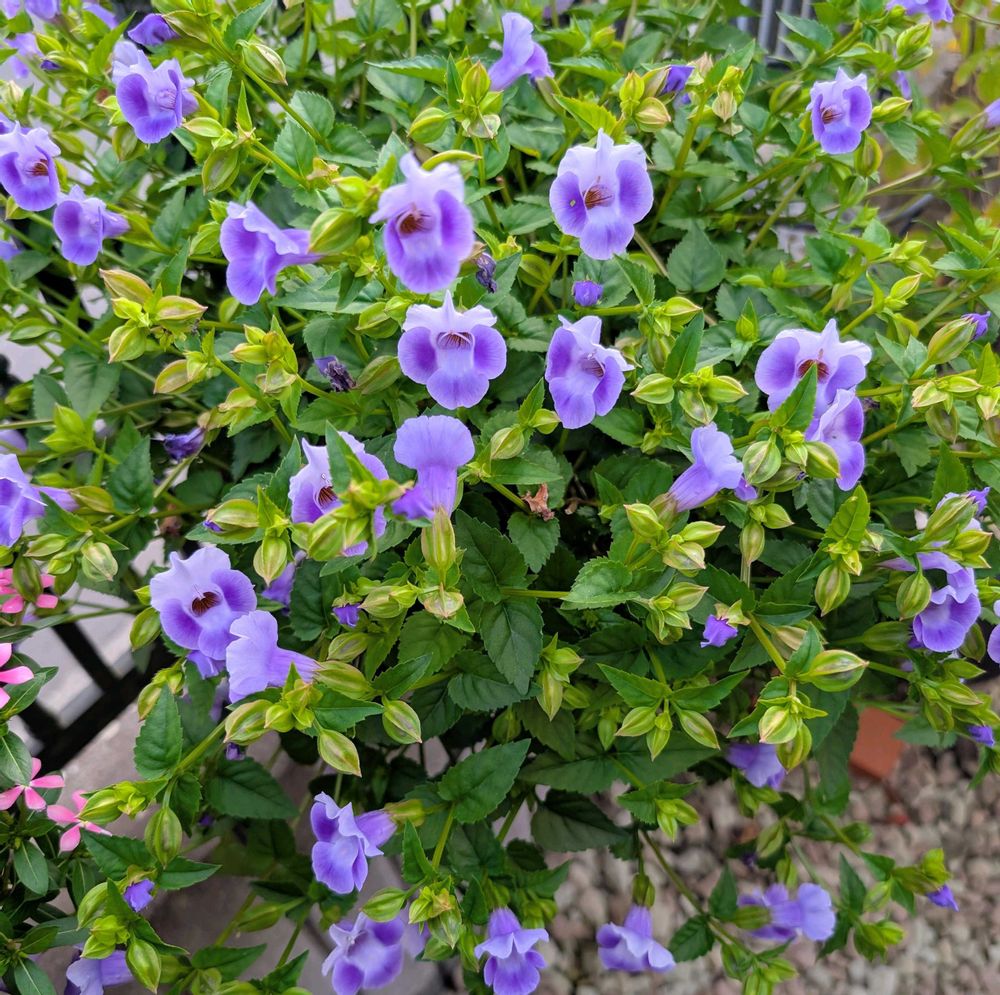 1年草を中心に鉢植え100鉢ぐらいを狭い庭でぎゅうぎゅうに育ててます。ペチュニア系、パンジービオラ系が好き。
