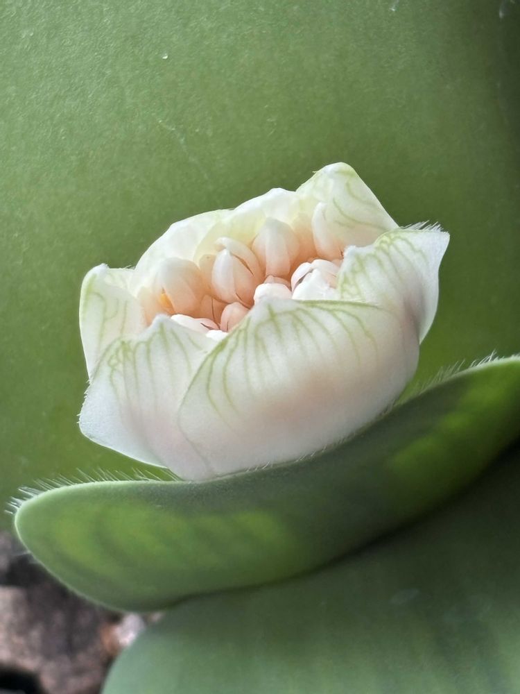 マユハケオモトはある朝、葉っぱの隙間に細長い物が見えてビックリ‼️