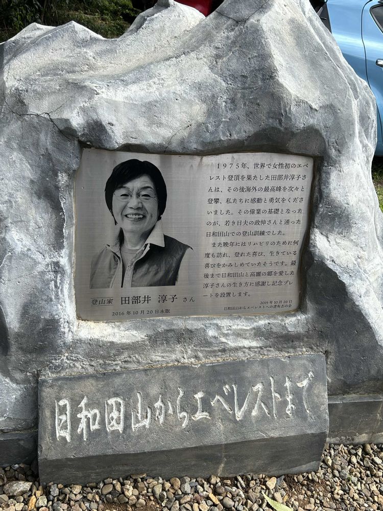 登山口近くには、登山家の田部井淳子さんの記念碑があります。
