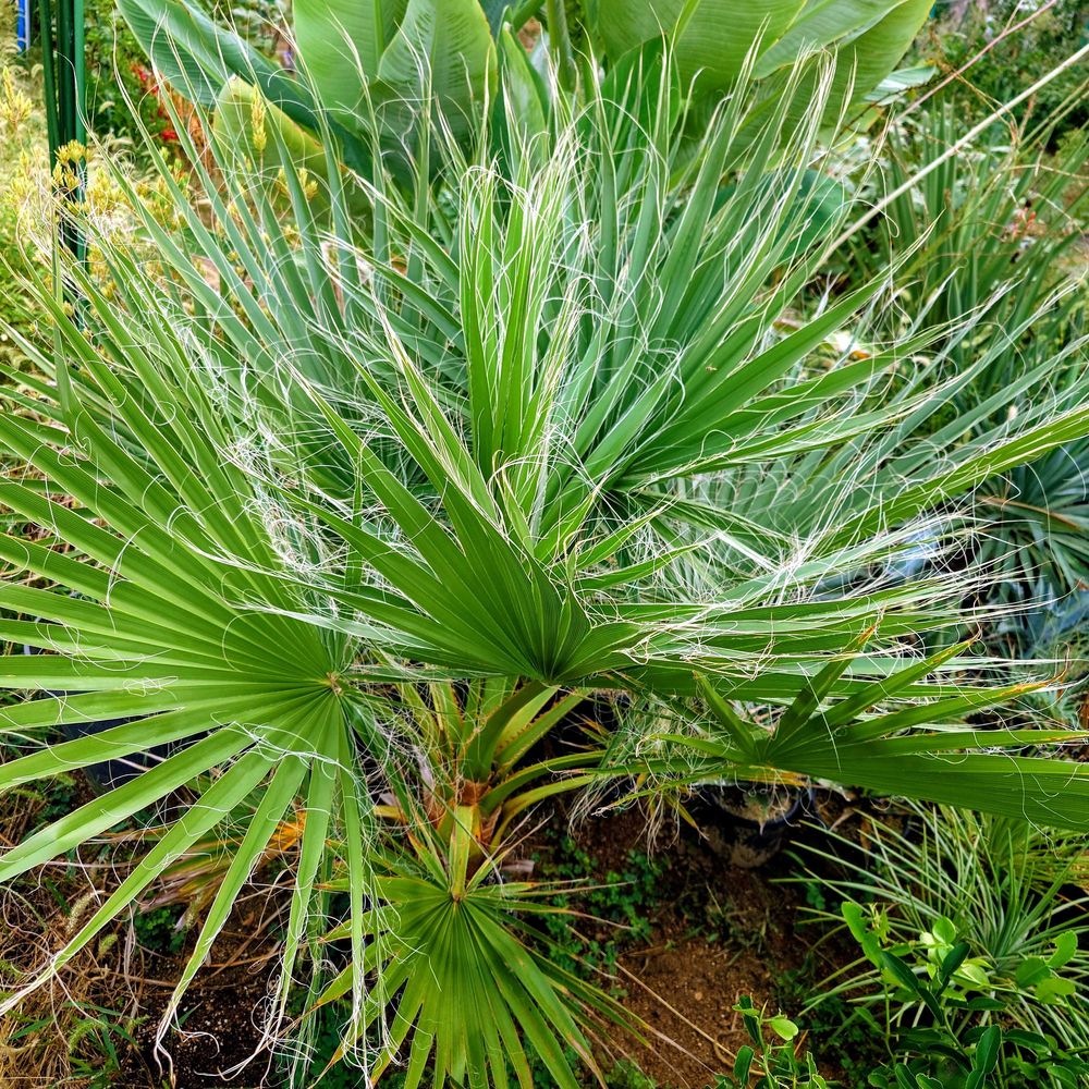 Washingtonia filifera: 幹が太く、ワシントンヤシモドキよりも耐寒性がある。