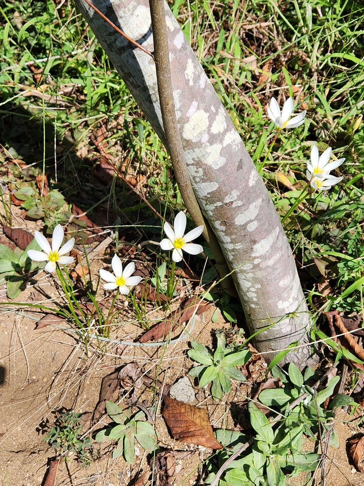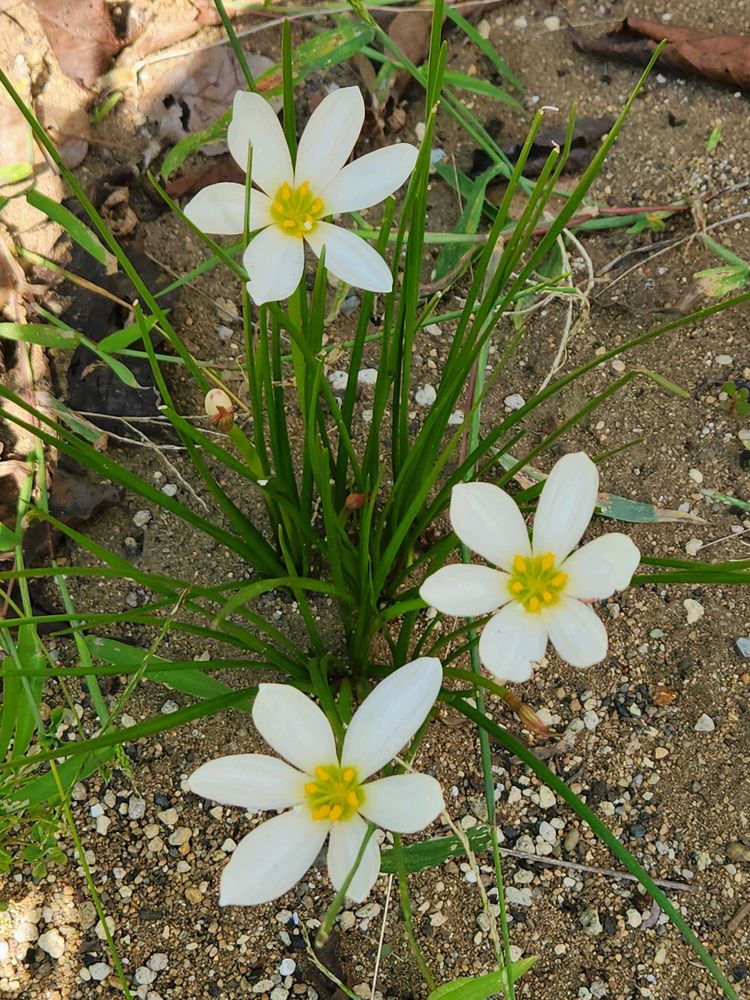 2️⃣ジュンベリーの根元にタマスダレが咲いています