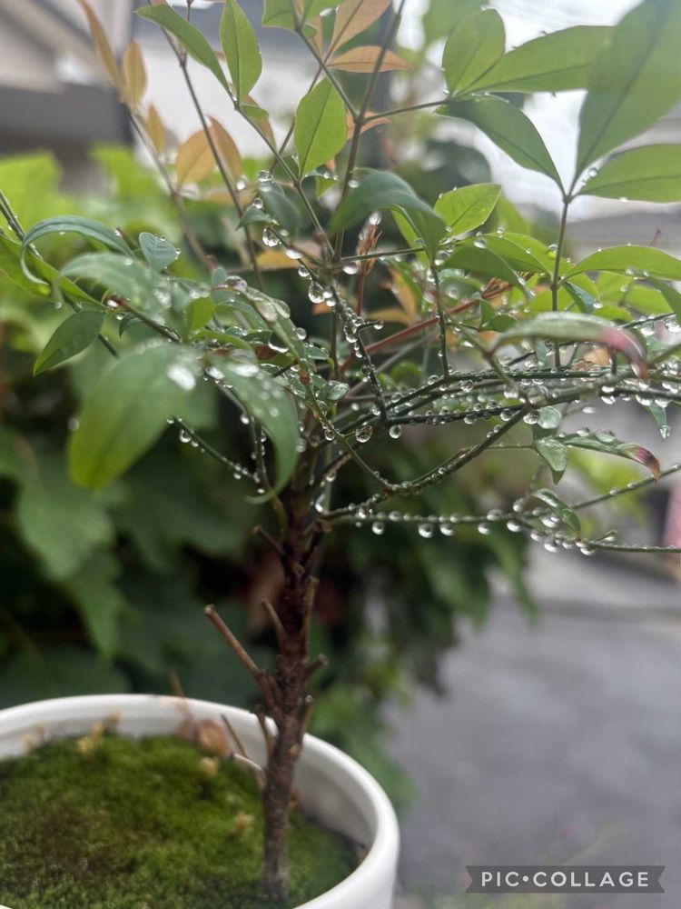 南天は盆栽ですね🪴水滴が素敵です💧💧💧