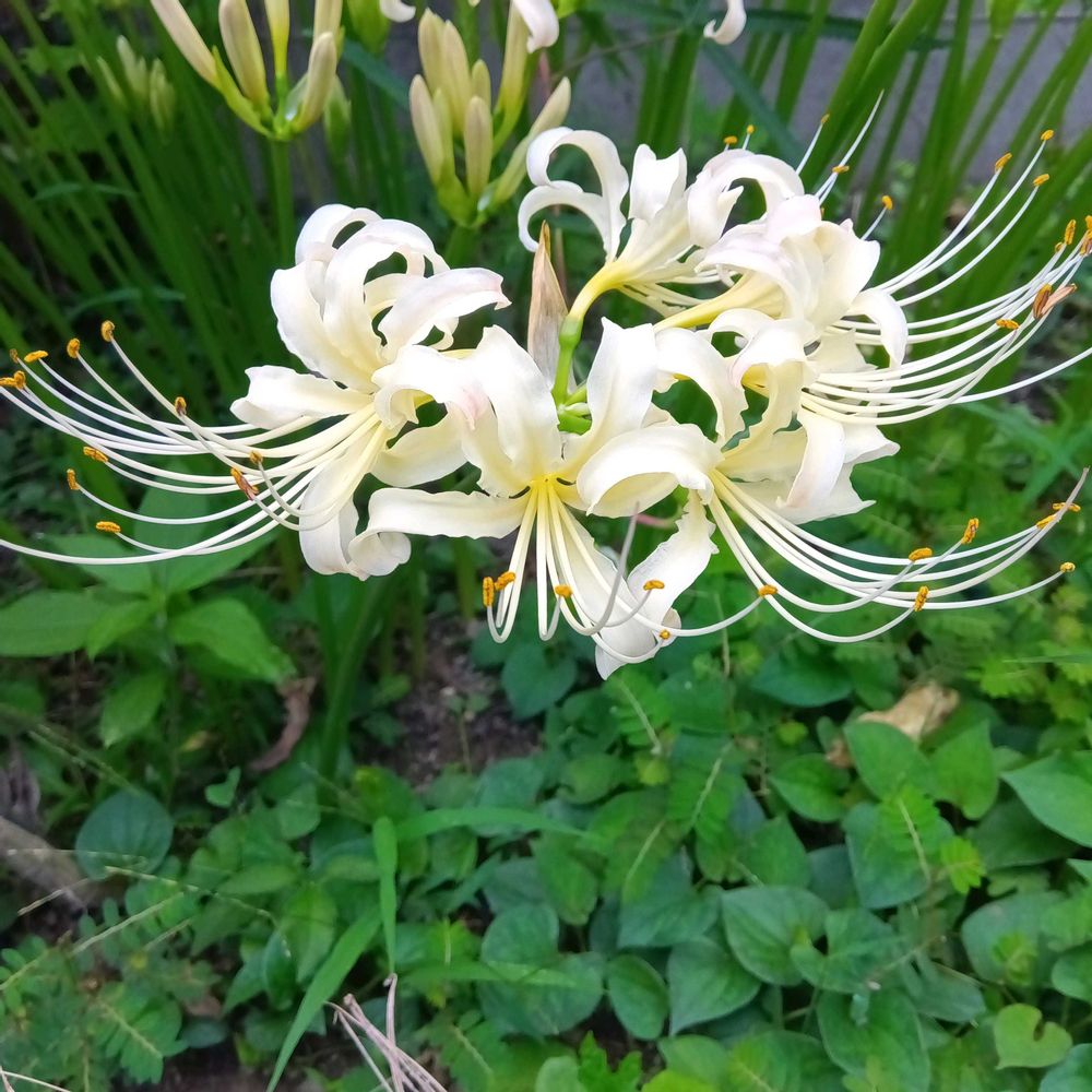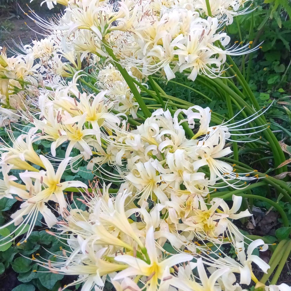 お隣の畑で咲き始めた白い彼岸花🤍💚🤍