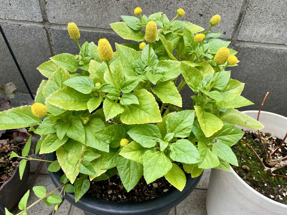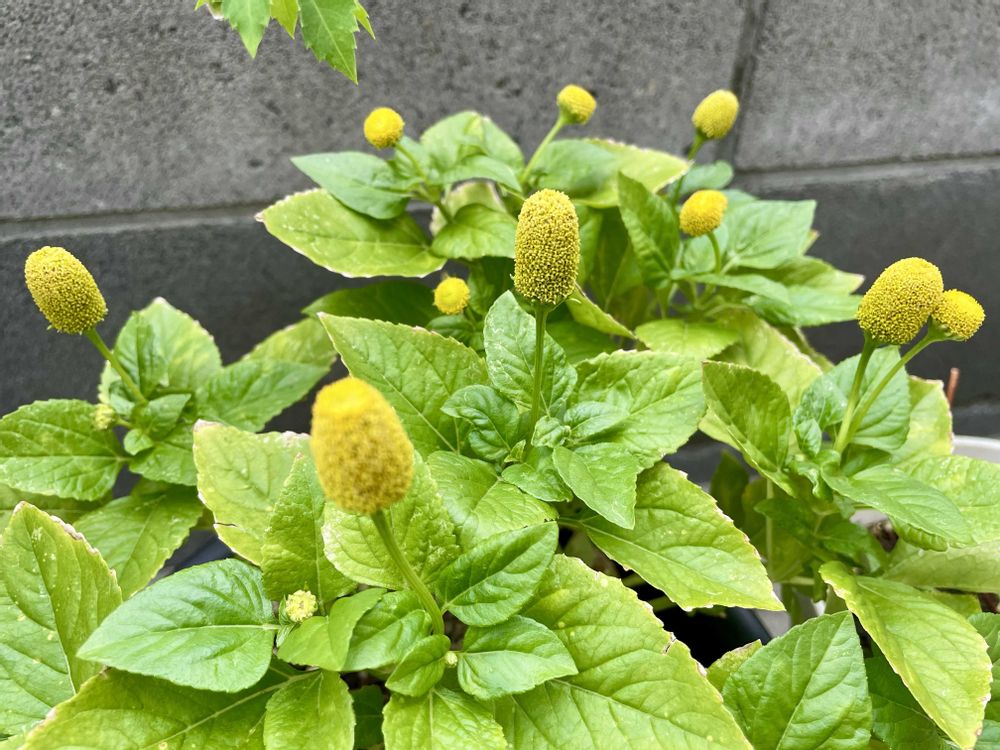 スピランサスのお花のてっぺんが茶色いのが「タマゴボール」全部黄色いお花が「ゴールデンタマゴボール」というみたいです💛