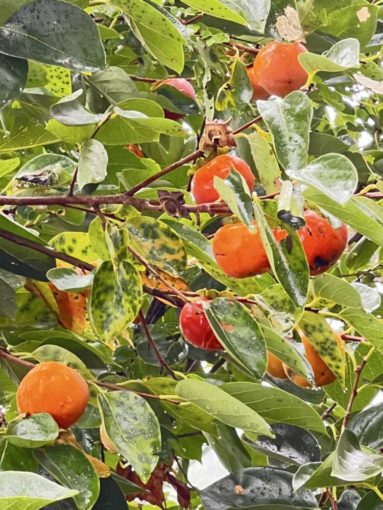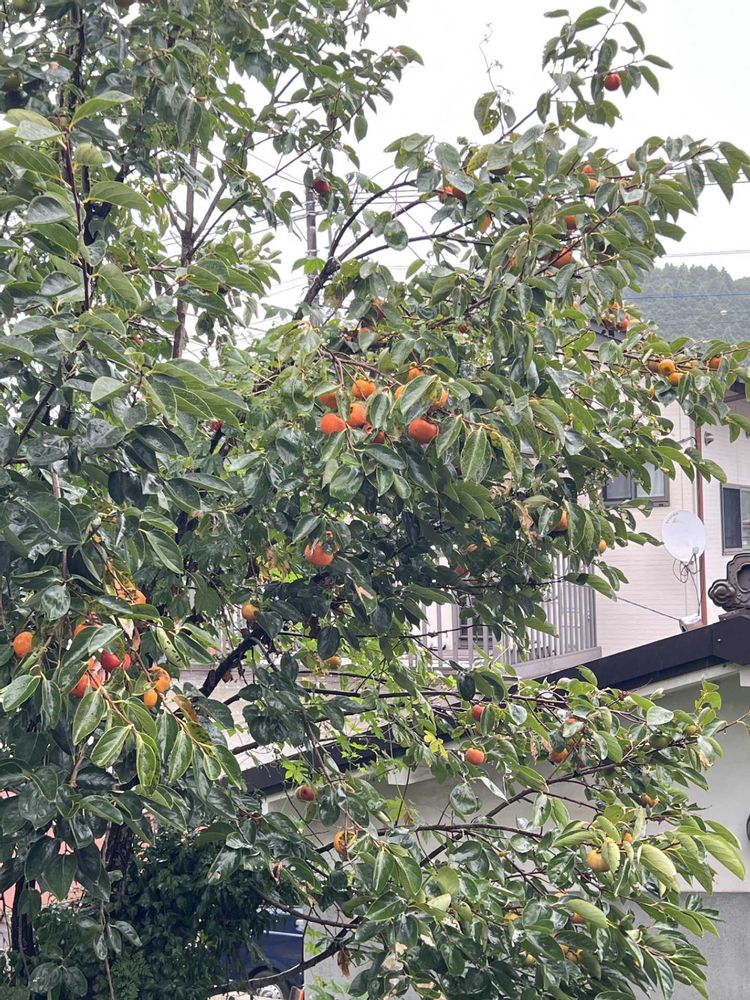 我が家の裏庭で、甘柿の木が沢山実らせてます