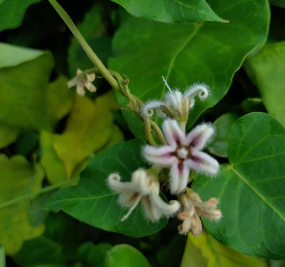 ガガイモ、通勤路に咲いていたのを雑草だから抜かれて、しばらく見た事なかったけど、別の場所でみつけました。