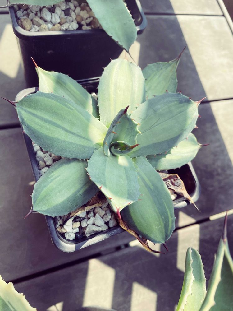 小さいアガベ様達はサイズ的に及川さんクレマチスの空き鉢が丁度良かったのですがもう植え替えしなきゃならないくらい成長早くてビックリ‼️