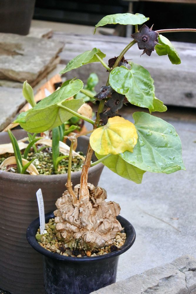 マテレア・シクロフィラは短く切れた蔓ですが、しっかり花を咲かせています。