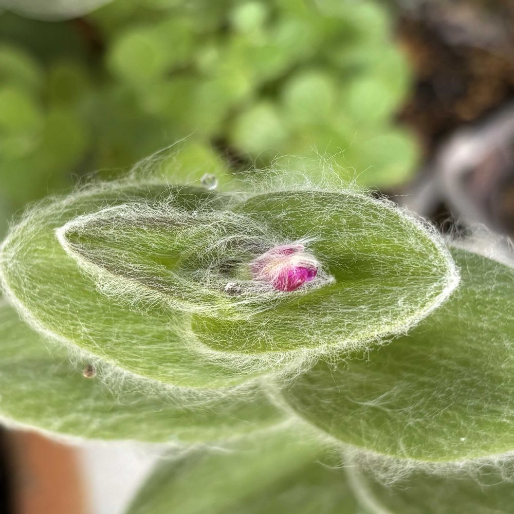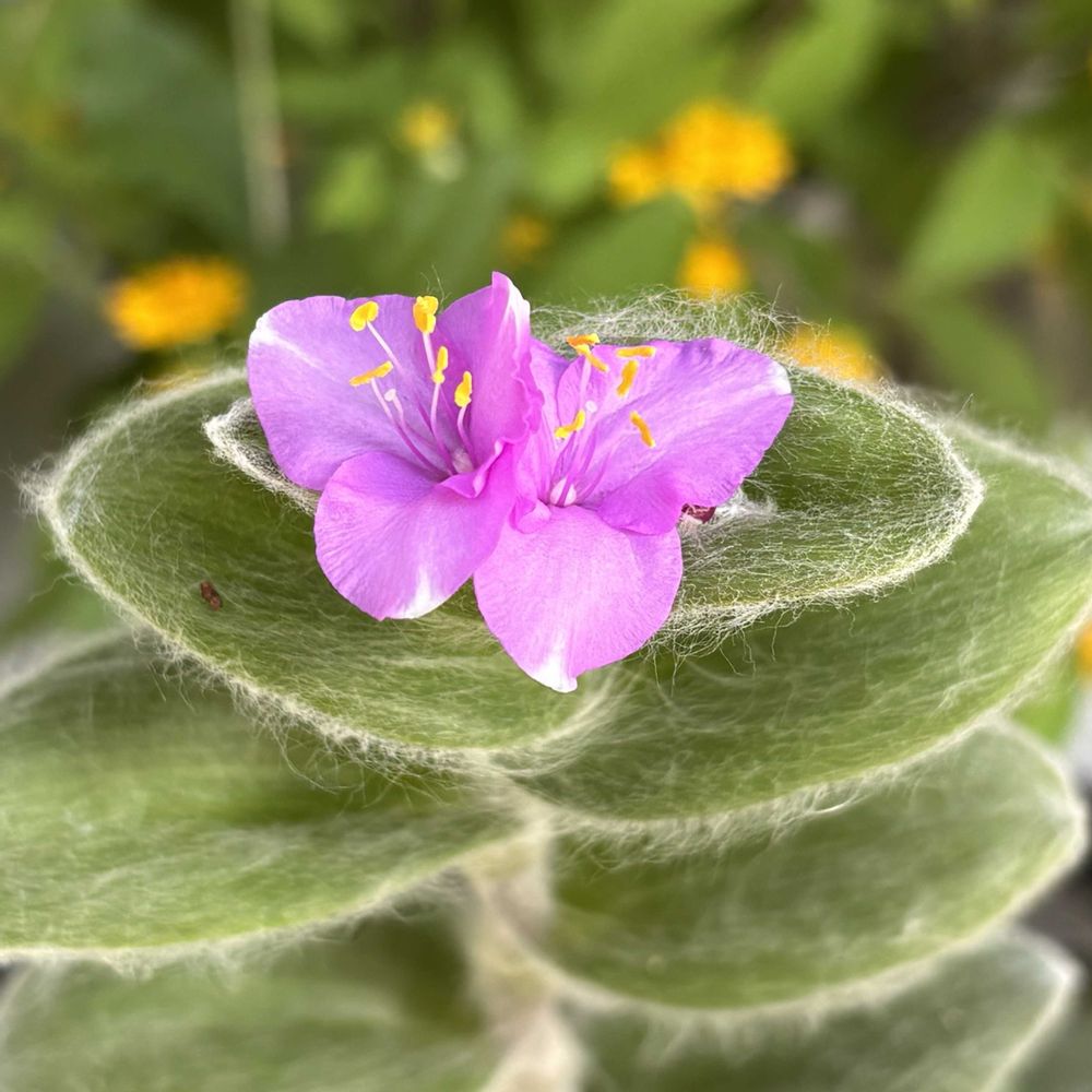 もふもふの葉っぱの上に、ちょこんと乗ってるお花、可愛らしいです(๑♡∀♡๑)
