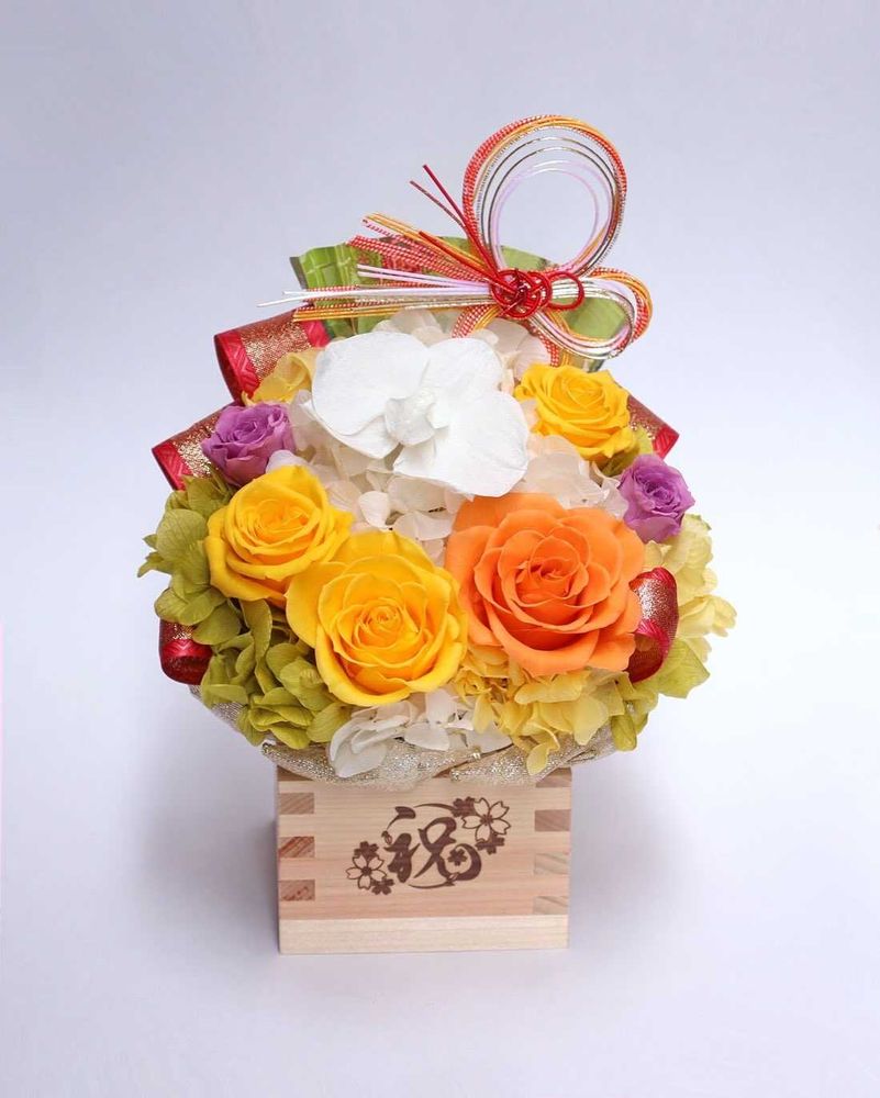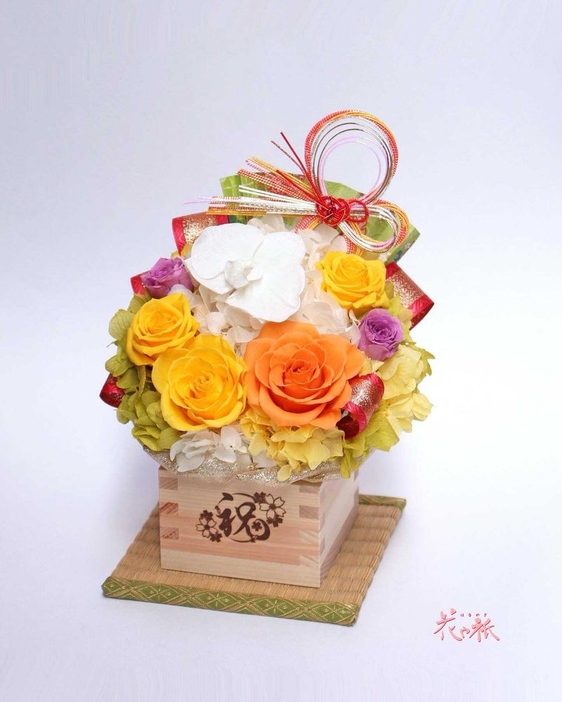 そして黄色やオレンジ色の薔薇が華やかに咲く枡フラワーです✨