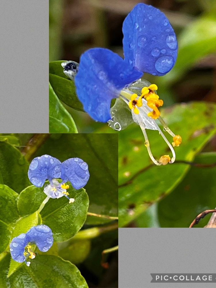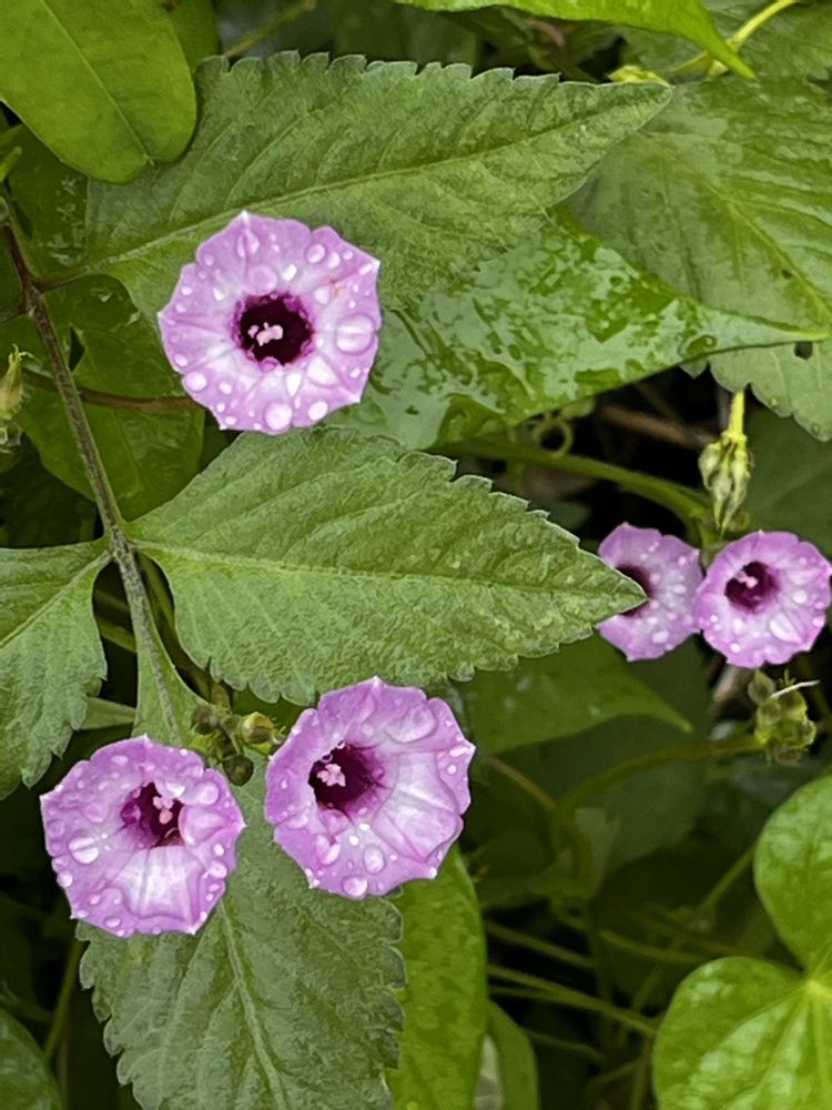 雨の中にイヌタデ、コセンダングサ、オトギリソウ、ツユクサ、ホシアサガオ、雫が綺麗ですね🤩